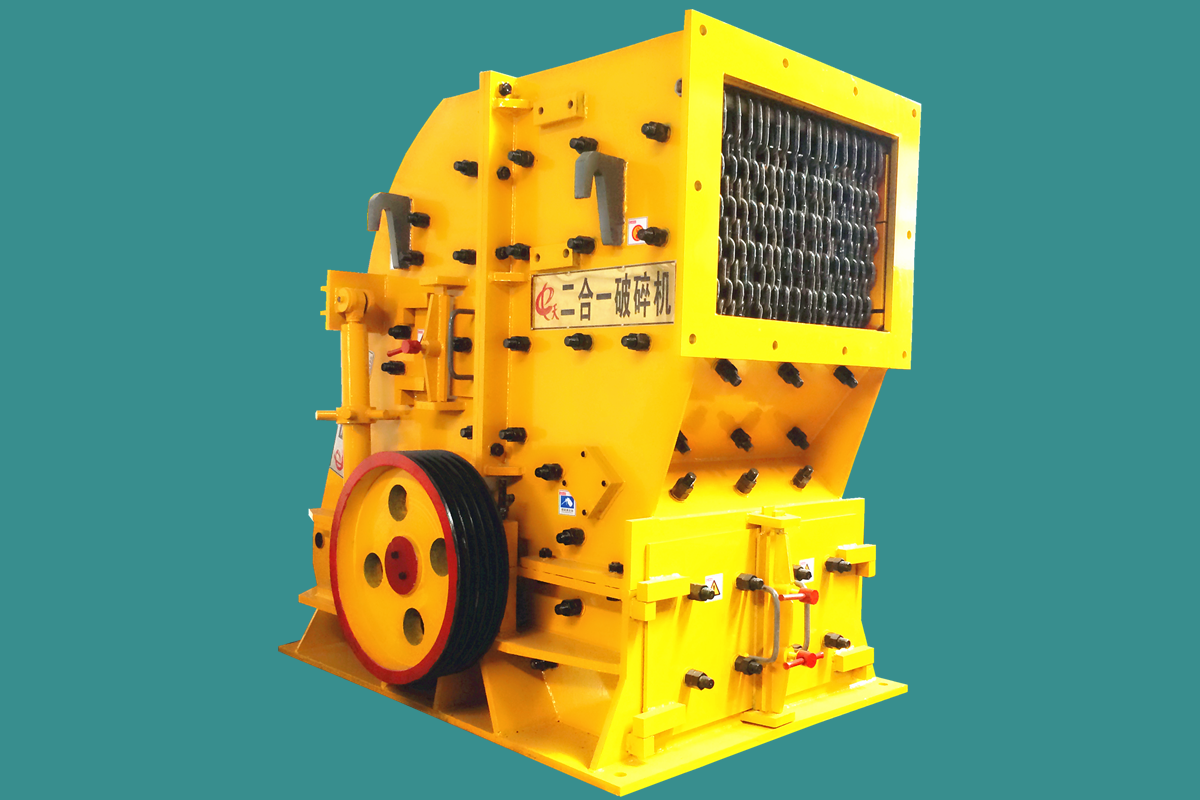 可破碎花崗巖、玄武巖、鵝卵石、鐵礦石等高硬度、磨損大的物料。破碎硬質石料選用鑲大金牙錘或者同時澆鑄的硬質合金錘,也可選用反擊式板錘。