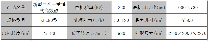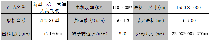 ZFC80型新型高效節能型二合一破碎機術參數: